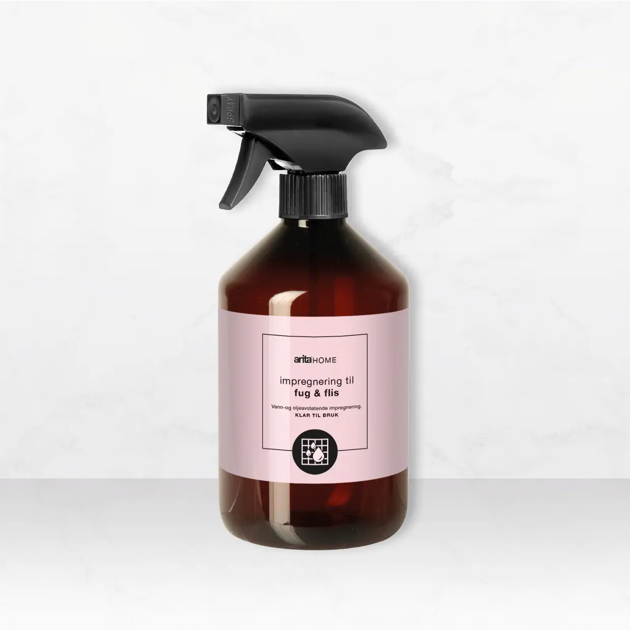 Arita Home fug & flis impregnering er en vann- og oljeavstøtende impregnering. Dette vil forenkle videre rengjøring, og hindre at vann og skitt trenger ned i fug og flis.