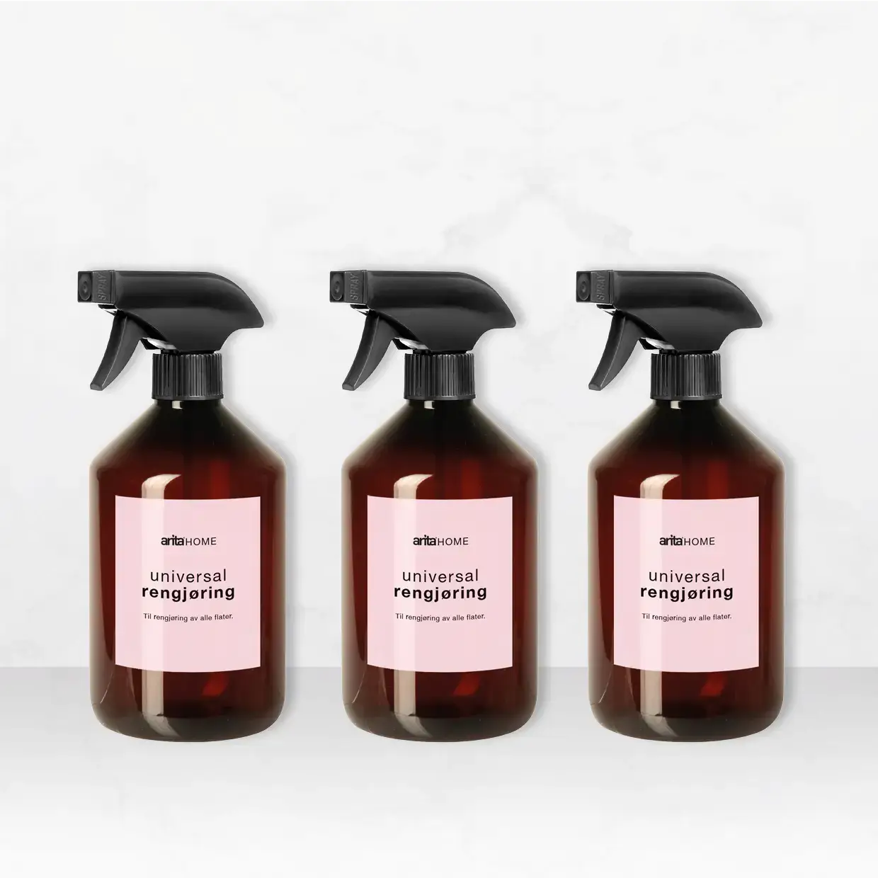 Brune sprayflasker i eksklusivt design, til bruk med Arita Home Universal rengjøring konsentrat.
