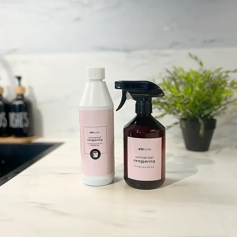 Lei av fingermerker, fett og skitt som setter seg overalt? Med Arita Home Universal Rengjøring får du et norskprodusert rengjøringsmiddel som fungerer på nesten alle overflater – både inne og ute.